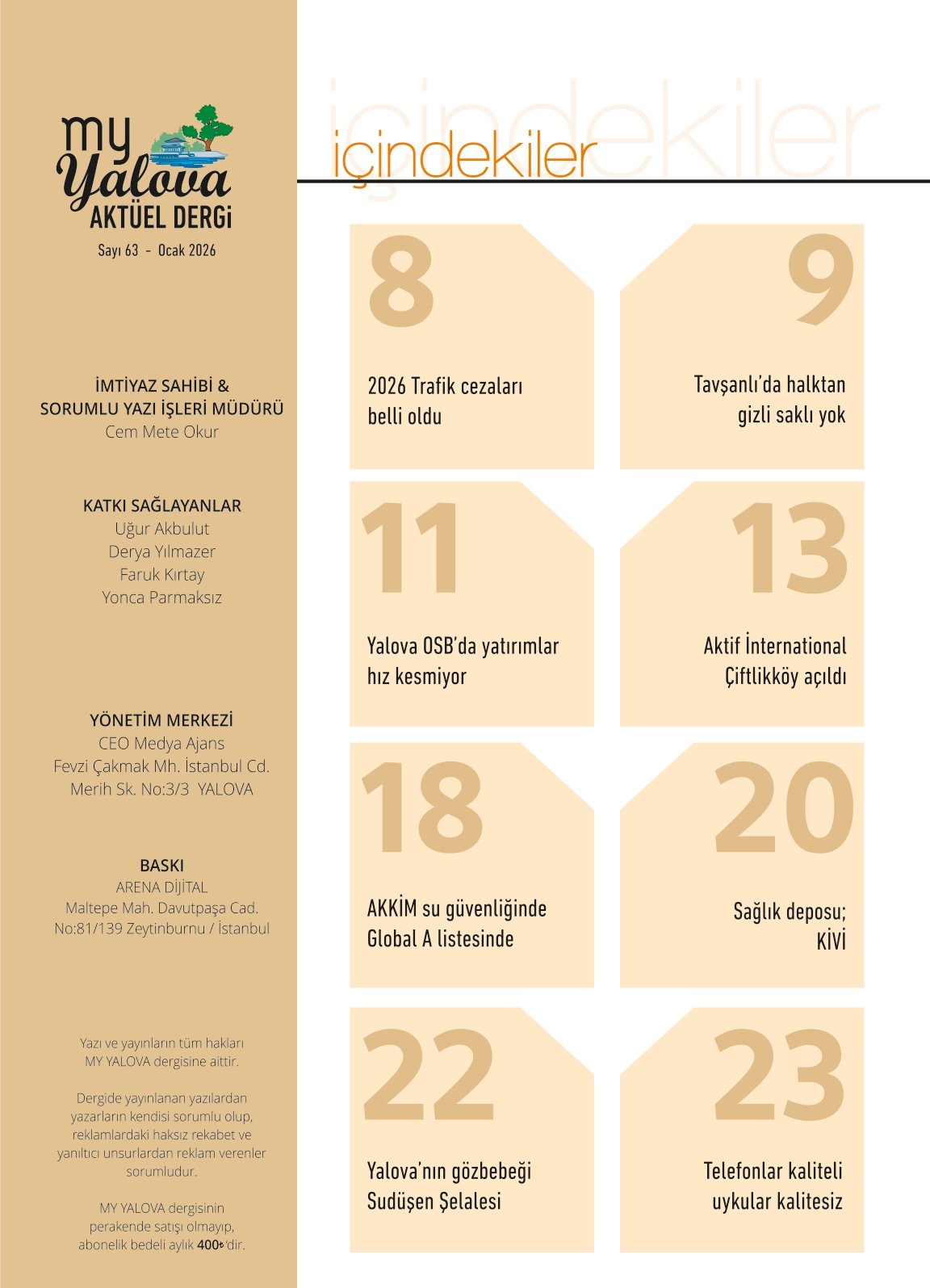 Benzer içerikler … MY YALOVA 62.SAYI MY YALOVA 61.SAYI MY YALOVA 60.SAYI Yorum Yap Yanıtı iptal etE-posta adresiniz yayınlanmayacak. Gerekli alanlar * ile işaretlenmişlerdirYorum * Ad * E-posta * İnternet sitesi Daha sonraki yorumlarımda kullanılması için adım, e-posta adresim ve site adresim bu tarayıcıya kaydedilsin. MY YALOVA 63.SAYI Yayınlanan: Aralık 30, 2025 Önceki: MY YALOVA 62.SAYI